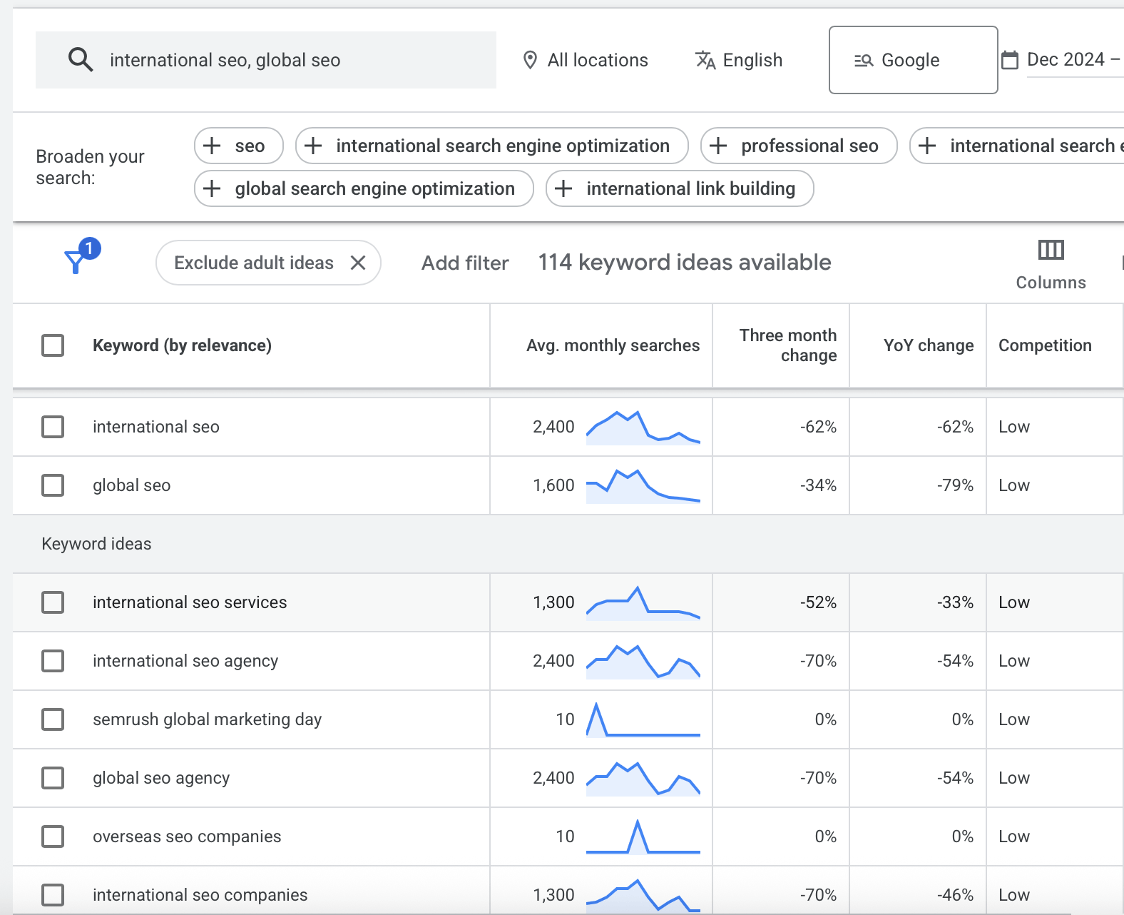 For international SEO, you’re researching keywords in multiple languages and understanding how search behavior differs by market. “Trainers” in the UK means something different than in the US. Search volume, competition, and user intent vary wildly across countries.